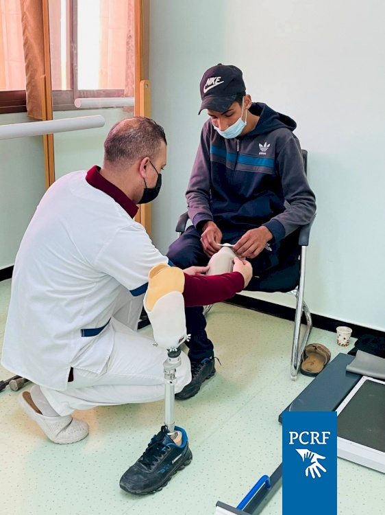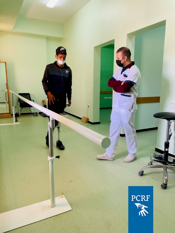 Abdel Rahman is one of our children sponsored in our project to help amputees in Gaza. The 16-year-old from South Gaza who had a traffic accident in 2016 and suffered severe injuries, including a left leg amputation below his knee. Abdel Rahman was only able to use his old prosthesis for two weeks during the past two years, but now at Hamad Hospital, he is persevering as for a first-time user of prosthetic limbs. Abdel Rahman thanked the PCRF for our support. His father says that he had not seen his son with such joy since his injury.