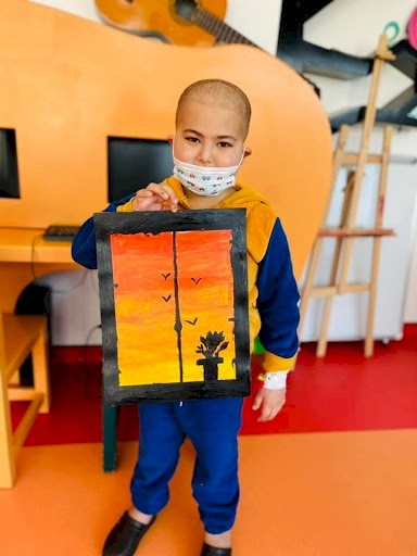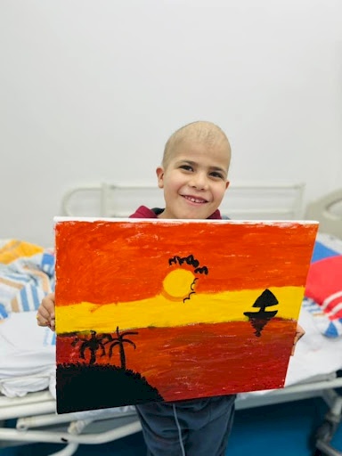 The children at the Huda Al Masri Cancer Department love spending time with their social workers and nurses. They participate in many different activities in the department such as painting, drawing, and music. These activities bring the children joy and happiness while undergoing treatment.