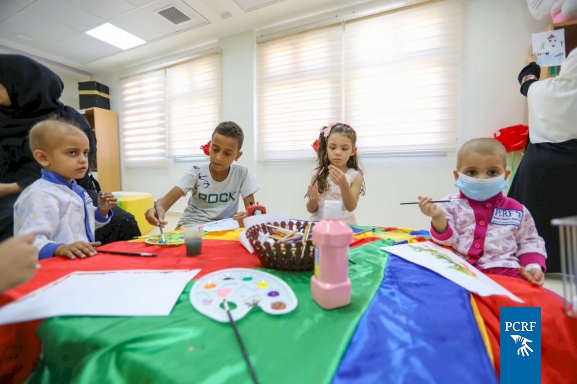 Today, our children painted with the help of their mothers and volunteers, who give their time to help the kids while they receive chemotherapy. Thanks to our supporters, PCRF is able to provide all necessary care for children with cancer in the Gaza Strip, providing therapeutic, psychological and recreational support to help them fight this hard disease.