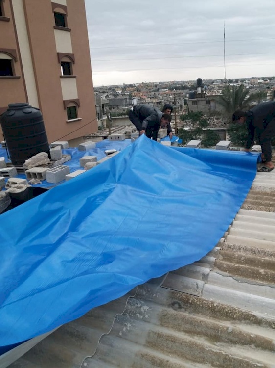 The PCRF team in south Gaza continued to distribute nylon to twenty impoverished families. This is part of PCRF's urgent winter relief projects. One-hundred families throughout the Gaza Strip received rolls of reinforced nylon which will cover the dilapidated asbestos roofs of their homes, preventing seeping rainwater and also helping to keep their homes warm.