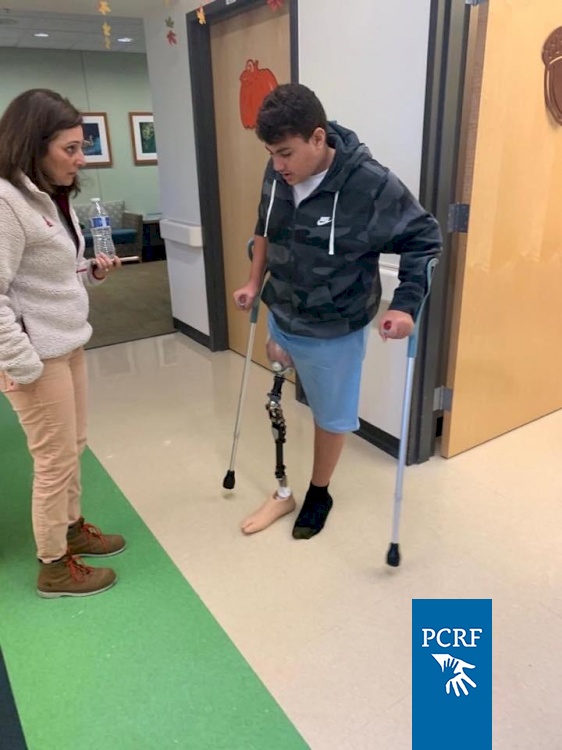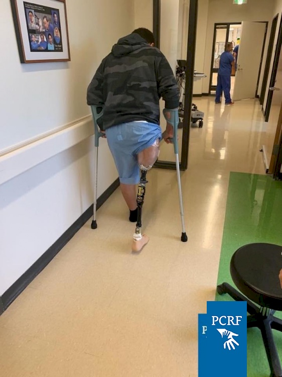 14-year-old Thaer from Gaza lost his leg in 2014 when his home was hit by a drone bomb. His mom and four siblings were killed. PCRF sent him back to the Shriners Hospital in Portland, Oregon for a new prosthesis so he can walk and return back to school. He is being cared for by volunteers from our local chapter. PCRF would like to thank our volunteers all over the world who give our children a chance to walk again.
