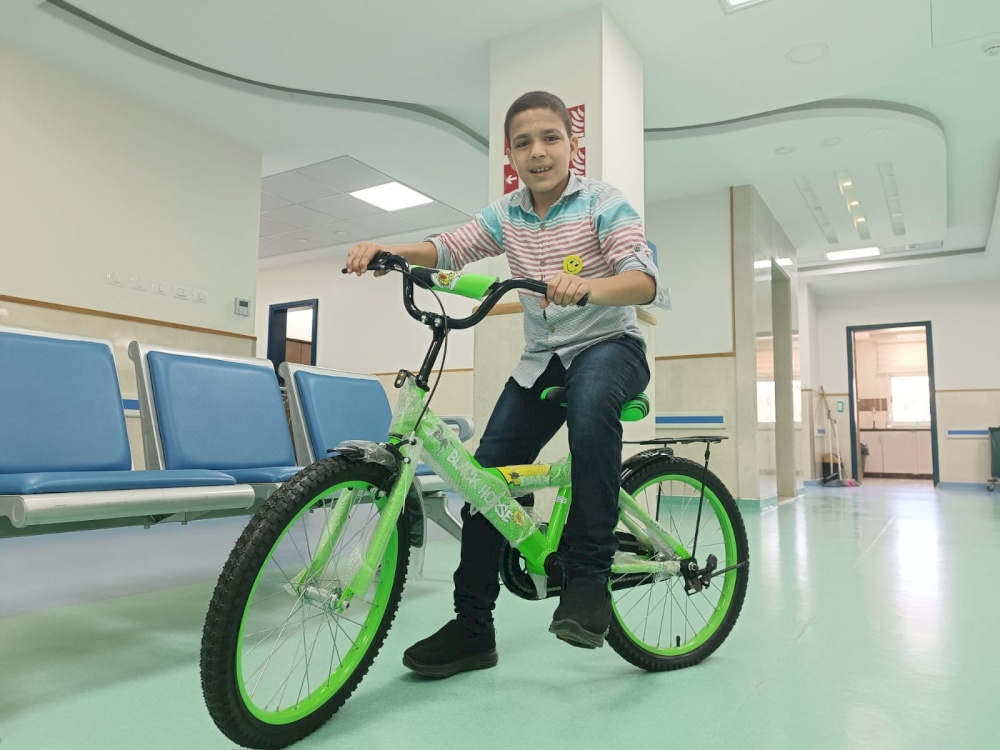 Yahya, a courageous 12-year-old battling tuber sclerosis at Dr. Musa and Suhaila Nasir Pediatric Cancer Department in Gaza, had his wish fulfilled through the PCRF Make-A-Wish Program. Despite his challenges, Yahya continues to spread his infectious smiles and love to everyone around him. One of his dreams was to own and ride a bicycle, and thanks to the generous donors at PCRF and the Make-A-Wish Program, his dream became a reality.